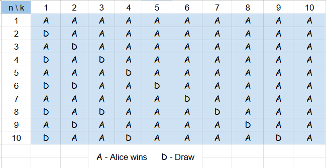 if(n%(k+1)==0) cout << "Draw" << endl;